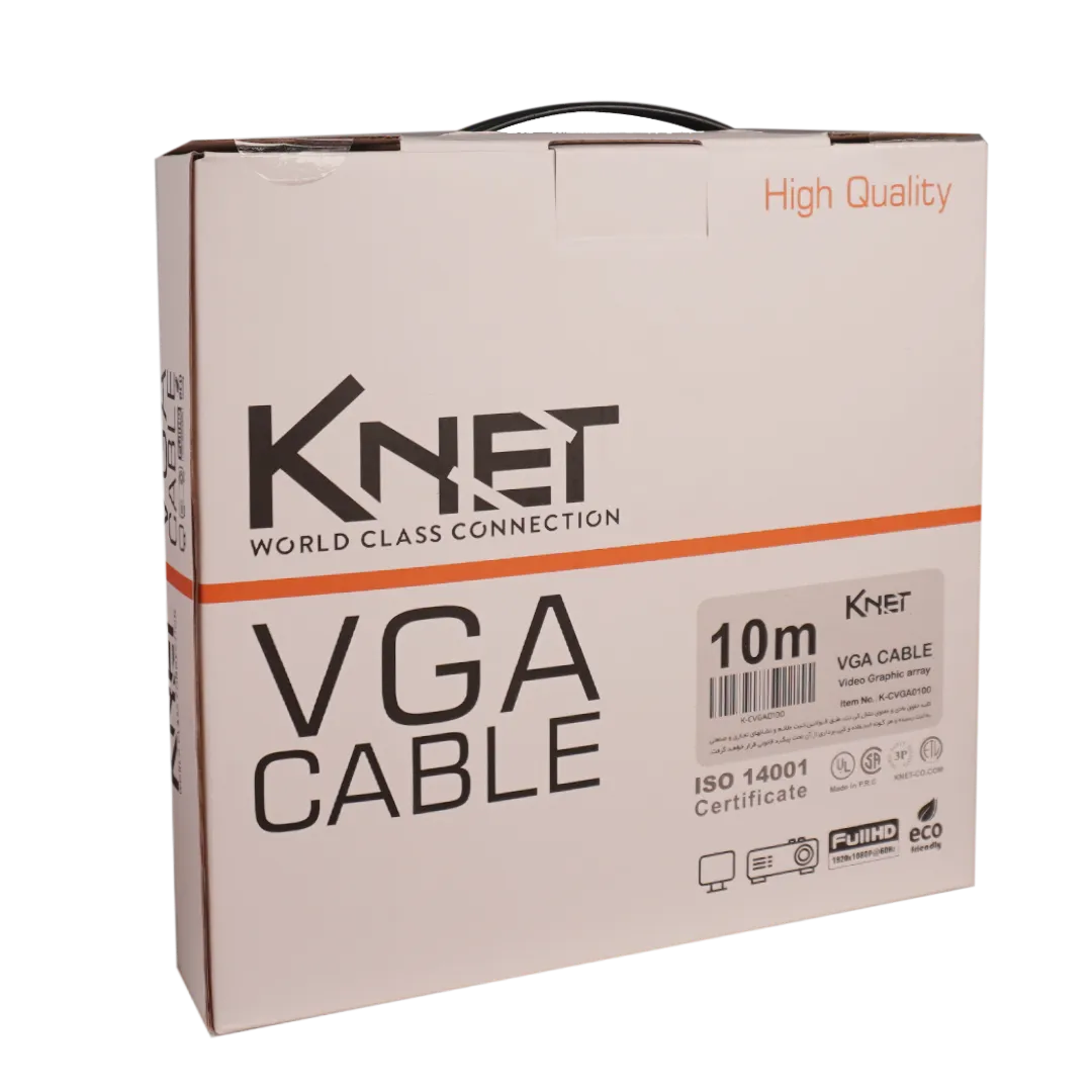 ناگفته نماند که زاویه سوکت این کابل بصورت استاندارد طراحی شده و علاوه بر آن جنس سر کانکتور این کابل از نوع آلومینیوم می باشد.کابل VGA یکی از قدیمیترین کابلهای مورد استفاده در کامپیوتر و لپ تاپ و وسایل تصویری است. این کابل با نام کابل RGB نیز شناخته میشود. کابل VGA انتقال تصویر را بر بستر آنالوگ انجام میدهد.از کابل وی جی ای برای اتصال کامپیوتر به مانیتور و ویدیو پروژکتور استفاده می شود.این کابل دارای قابلیت ضد نویز می باشد.کابل وی جی ای در متراژ مختلف در بازار عرضه می شود.