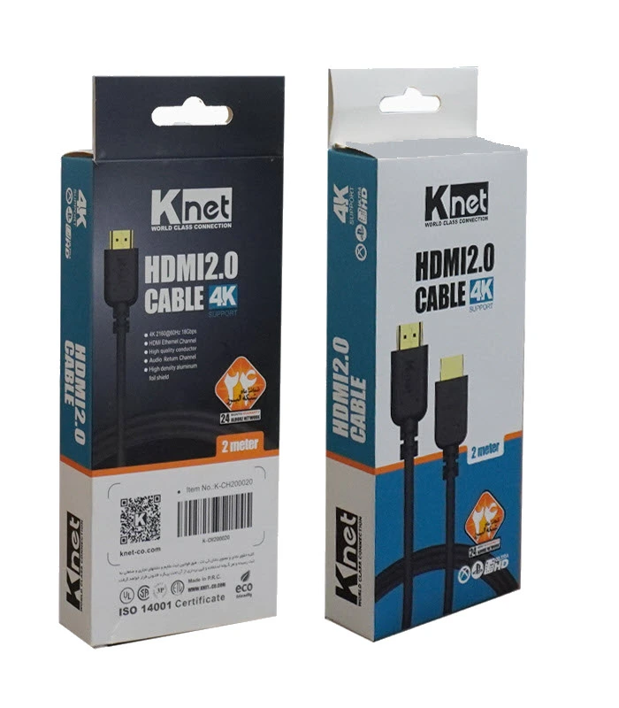 “کابل 2.0 HDMI کی نت 2 متری Knet K-C220”محصولی با کیفیت از برند کی نت که جهت اتصال به تلویزیون، کامپیوتر، کنسول و… مناسب است. این کابل با ساختاری از جنس PVC مقاومت بالایی در برابر کشیدگی، تاب خوردگی و گره خوردن دارد. جنس سرکانکتور این محصول gold plated المینیوم است که سبب شده این کابل در برابر سایش و فشار مقاوم باشد. از رزولوشن 4K با نرخ تصویر 60 هرتز و میزان سرعت انتقال اطلاعات 18 گیگابیت بر ثانیه پشتیبانی می کند. پشتیبانی از HDCP-ARC-HDR -متریال تمام مس از ویژگی های دیگر این محصول می باشد.
