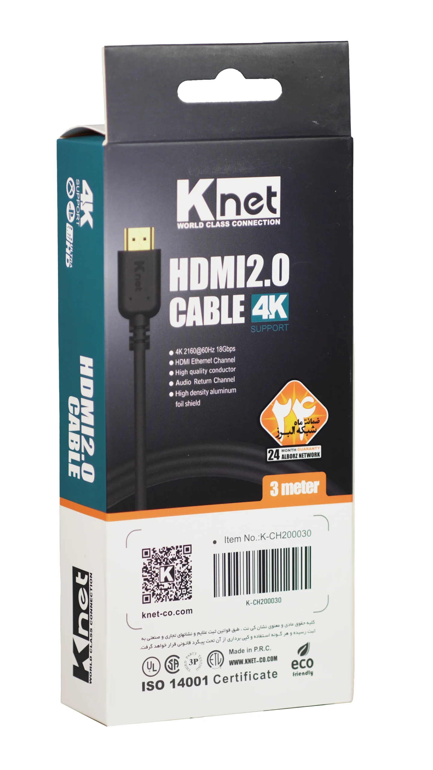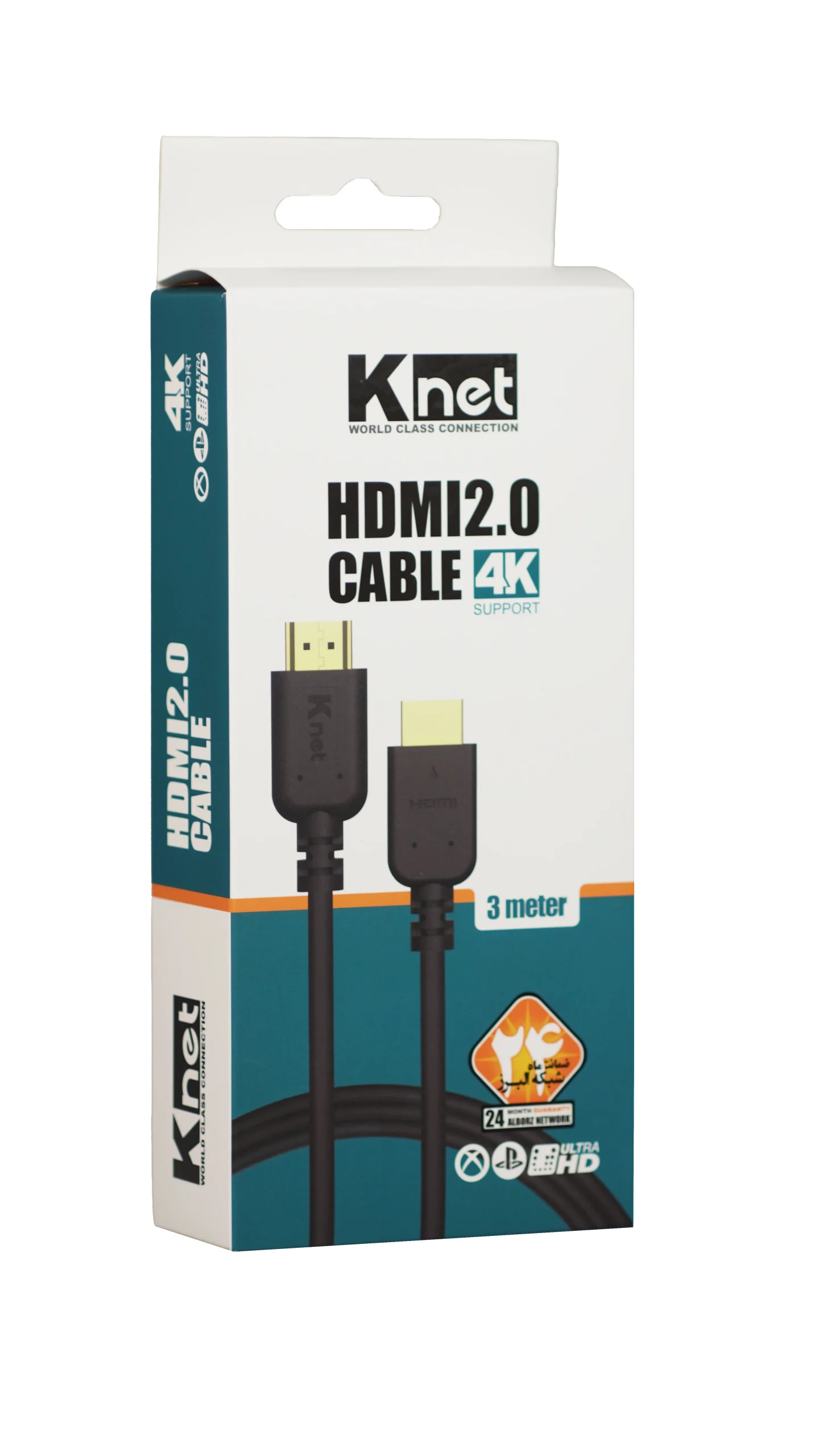“کابل 2.0 HDMI کی نت 3 متری Knet K-C221”محصولی با کیفیت از برند کی نت که جهت اتصال به تلویزیون، کامپیوتر، کنسول و… مناسب است. این کابل با ساختاری از جنس PVC مقاومت بالایی در برابر کشیدگی، تاب خوردگی و گره خوردن دارد. جنس سرکانکتور این محصول gold plated المینیوم است که سبب شده این کابل در برابر سایش و فشار مقاوم باشد. از رزولوشن 4K با نرخ تصویر 60 هرتز و میزان سرعت انتقال اطلاعات 18 گیگابیت بر ثانیه پشتیبانی می کند. پشتیبانی از HDCP-ARC-HDR -متریال تمام مس از ویژگی های دیگر این محصول می باشد .