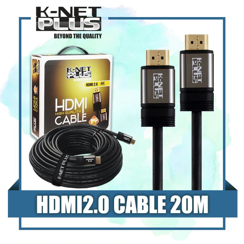 “کابل 2.0 HDMI کی نت پلاس 20 متری Knet Plus KP-A107”دارای روکش از جنس (PVC) و کانکتوری با روکش از جنس فلز طلایی است. کابل HDMI2.0 مجهز به قابلیت ضد نویز و محافظ داخلی با پوششی از جنس فویل است. این کابل تصاویر را با وضوح (4K)، (3D) و (HDCP) پشتیبانی می کند. زاویه سوکت این کابل استاندارد بوده و جنس سر کانکتور آن آلومینیوم (GOLD PLATED) می باشد. این کابل HDMI برای اتصال تلویزیون های 4K/HD TV به Blu-Ray/DVD Player, Xbox, Play Station, PC بسیار مناسب و کاربردی است. این کابل از نوع تبدیل (HDMI) نسخه 2.0 می باشد که توانایی انتقال اطلاعات سیگنالی با سرعت 18 گیگابایت بر ثانیه را دارد. ویژگی مهم کابل HDMI 2.0 سرعت بالا انتقال داده هاست. این کابل قابلیت پشتیبانی از تصاویر 4K و 3D را دارد و برای انتقال تصاویر بین دو دستگاه باکیفیت بالا استفاده می شود.