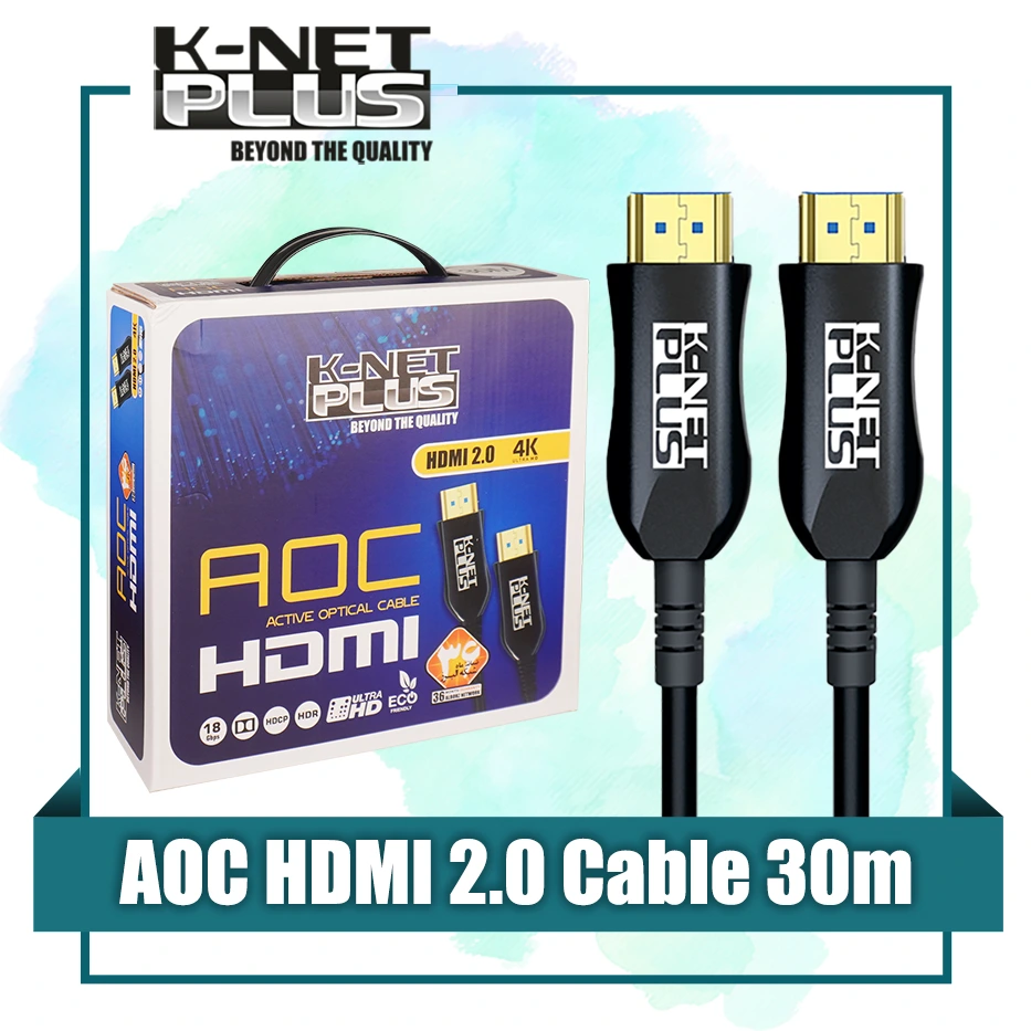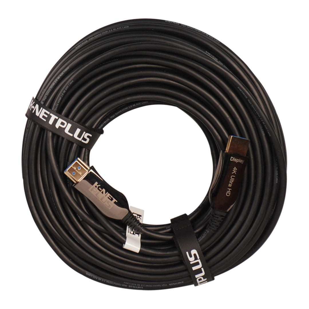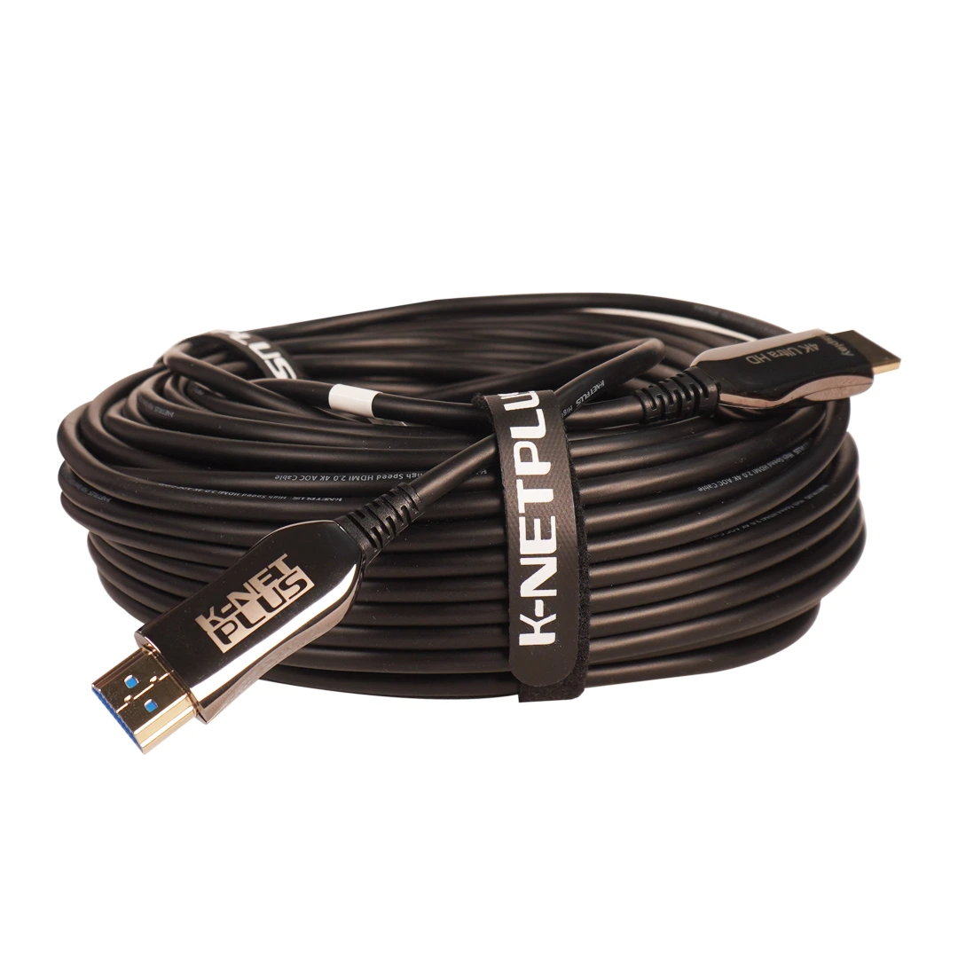 “کابل 2.0 HDMI فیبر نوری کی نت پلاس 30 متری Knet Plus KP-A145”یک رابط با سرعت انتقال و کیفیت ساخت بالاست. این کابل قابلیت پخش تصاویر سه بُعدی و پشتیبانی از وضوح تصویر 4K را دارد. این کابل HDMI برای استفاده در فواصل بالا و طیف وسیعی از دستگاه هایی که به نمایشگر های 4K متصل میشوند مانند کنسول های بازی، رایانه های رومیزی/همراه، DVD Player ،DVR و… مناسب میباشد. فیبر نوری نویز پذیر نبوده و قیمت آن نسبت به کابل های مسی در فواصل بالا مقرون به صرفه تر میباشد.