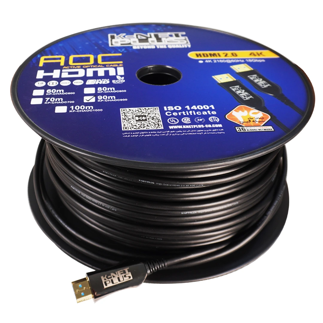 کابل 2.0 HDMI فیبر نوری کی نت پلاس 90 متری KP-A151