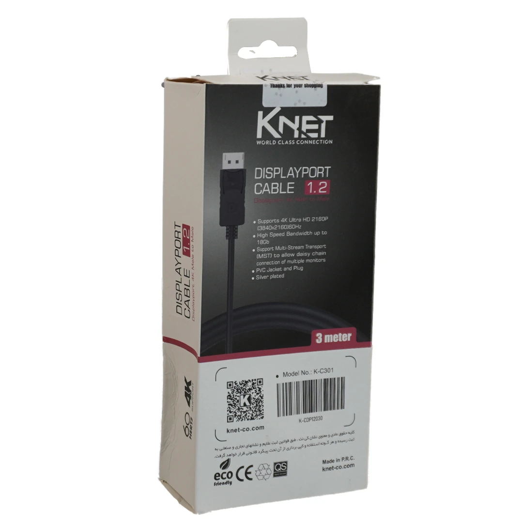 کابل DisplayPort 1.2 کی نت 3 متری K-C301