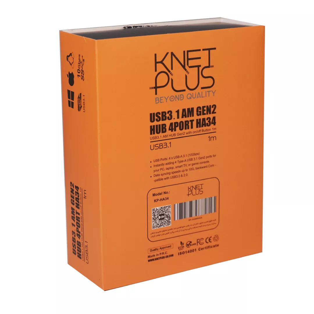 “هاب 4 پورت USB 3.1 کی نت پلاس Knet Plus KP-HA34” محصول جدید برند کی نت پلاس است.این هاب 4 پورت USB 3.1 با ورودی و خروجی USB 3.1 Gen 2، یک راهکار ایدهآل برای افزایش تعداد پورتهای USB در کامپیوتر یا لپتاپ شماست. با سرعت انتقال داده فوقالعاده 10 گیگابیت بر ثانیه، میتوانید فایلهای حجیم را در کسری از ثانیه منتقل کنید. این سرعت بالا، برای کاربرانی که با دستگاههای ذخیرهسازی پرسرعت، دوربینهای حرفهای یا سایر لوازم جانبی با پهنای باند بالا کار میکنند، بسیار مناسب است.کابل یک متری این هاب انعطاف پذیری لازم را برای قرار دادن آن در موقعیت دلخواه فراهم میکند و آداپتور 5 ولت 2 آمپر، تامین برق پایدار و کافی را برای تمامی پورتها تضمین میکند. این ویژگی به ویژه هنگام اتصال چندین دستگاه پرمصرف مانند هارد اکسترنال یا SSD ضروری است تا از افت سرعت یا قطع شدن اتصال جلوگیری شود.این هاب، راهحلی کارآمد و پرسرعت برای تمامی نیازهای اتصال شماست، چه برای کاربری خانگی، چه برای محیطهای اداری یا حتی حرفهای.ویژگی برجسته این هاب، وجود کلید خاموش/ روشن مجزا برای هر پورت است. این قابلیت به شما امکان میدهد تا هر دستگاه متصل را بهصورت مستقل مدیریت کنید، بدون نیاز به جدا کردن فیزیکی کابل. این ویژگی علاوه بر صرفهجویی در مصرف انرژی، به حفظ عمر مفید دستگاههای شما نیز کمک میکند و کنترل بیشتری بر اتصالاتتان فراهم میآورد.