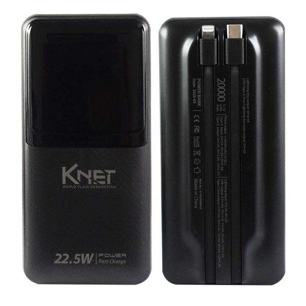 این ظرفیت بالا، خیال شما را از بابت تمام شدن شارژ دستگاههایتان در طول روز راحت میکند.پاور بانک کی نت با پشتیبانی از حداکثر سرعت شارژ 22.5 وات، دستگاههای شما را در کمترین زمان ممکن شارژ میکند. این ویژگی، به ویژه در مواقعی که زمان کمی برای شارژ کردن دستگاههایتان دارید، بسیار کارآمد است.