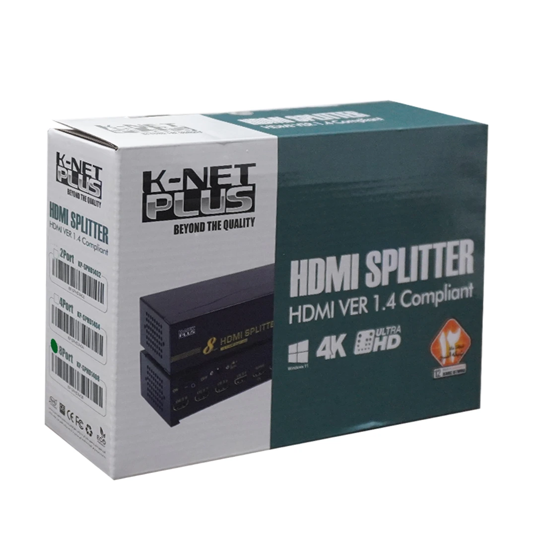 “اسپلیتر 8 پورت HDMI کی نت پلاس Knet Plus KP-S648”وسیله ای برای تبدیل یک ورودی به چندین خروجی می باشد. اسپلیتر 8 پورت HDMI کی نت پلاس Knet Plus KP-SPHD1408 یک تصویر را بدون افت کیفیت بر روی چندین نمایشگر، انتقال میدهد.با استفاده از ویدئو اسپلیتر می توانید خروجی کارت گرافیک خود را افزایش دهید و بطور همزمان یک تصویر را بر روی چند مانیتور نمایش دهید.مورد استفاده این دستگاه در اکثر فروشگاه ها می باشد که می خواهند تبلیغات خود را روی چند مانیتور بطور همزمان بیندازند. پورت های این دستگاه از نوع HDMI است.