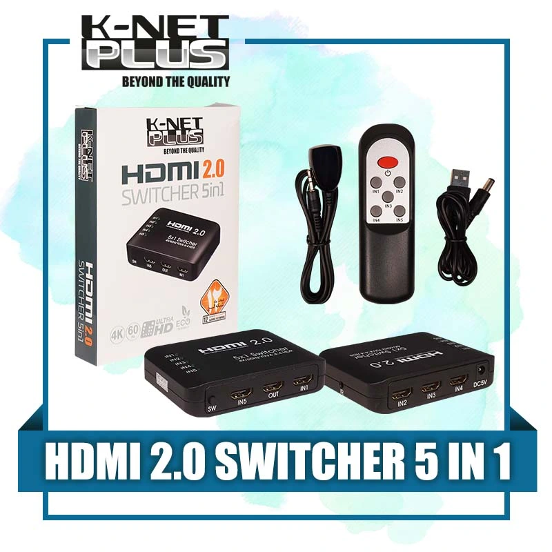 “سوئیچ 5 پورت HDMI کی نت پلاس Knet Plus KP-S725”با ریموت کنترل دستگاهی است که به شما امکان میدهد پنج دستگاه منبع HDMI را به یک نمایشگر HDMI متصل کنید. این سوئیچ از نسخه 2.0 HDMI پشتیبانی میکند و میتواند رزولوشن 4K با نرخ تازه سازی 60 هرتز را منتقل کند.سوئیچ 5 پورت HDMI 2.0 کی نت پلاس مدل KP-SWHD2005 یک گزینه عالی برای افرادی است که به دنبال یک سوئیچ HDMI ساده و مقرون به صرفه هستند. این سوئیچ از ویژگیهای مختلفی برخوردار است که آن را برای اتصال چندین دستگاه منبع HDMI به یک نمایشگر مناسب میکند.